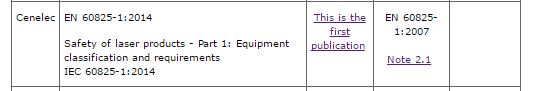 2017年12月31日最后一欄中的數(shù)字是指可交付成果到期的日期,很快就會有消費者激光器的特定安全標準,這意味著超出另一個安全指令(如LVD)范圍的激光產(chǎn)品將需要符合特定的激光安全標準才能符合GPSD。